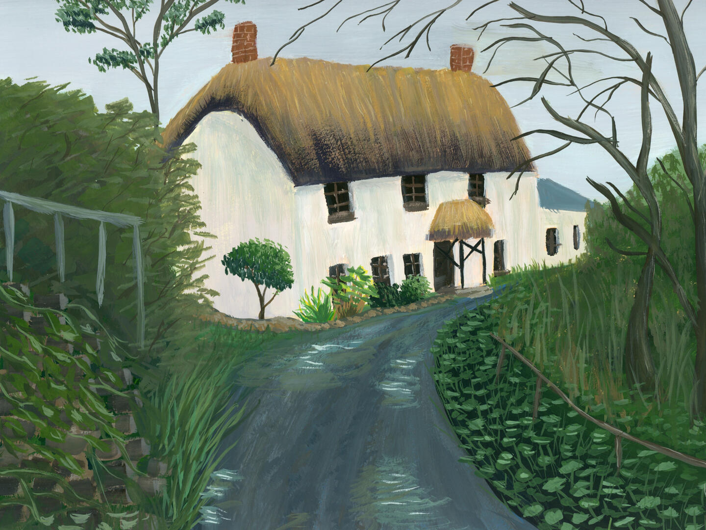 Cloudy Cottage, 2022, gouache on paper