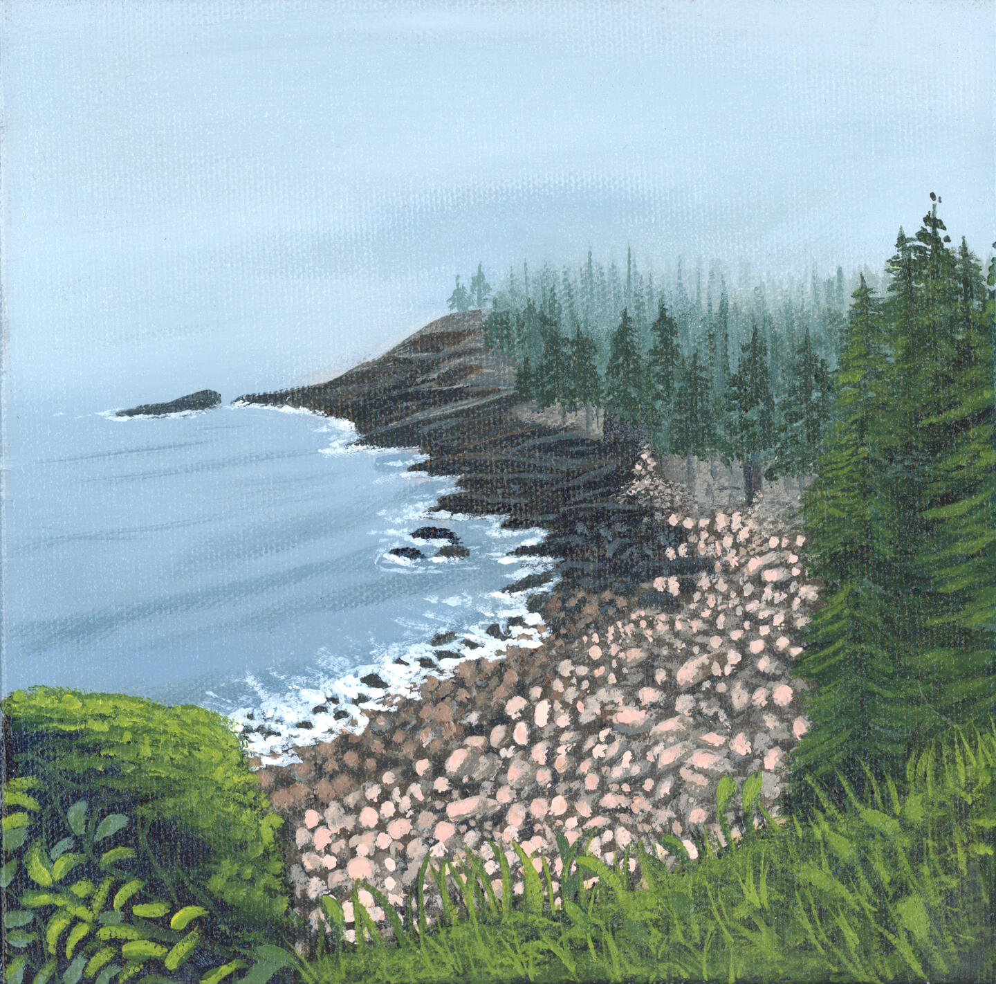 Acadia Through Mist, 2023, acrylic on canvas